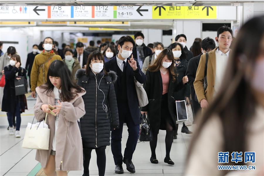 3月4日,在日本东京,人们戴口罩出行。 据日本广播协会(NHK)电视台统计报道,截至当地时间5日10时半,日本国内新冠病毒感染者达330人。与前一日同期统计数字相比,确诊患者增加36人,创下单日增幅新高。日本47个都道府县中已有29个出现感染者。 新华社记者 杜潇逸 摄