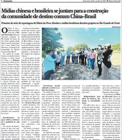 10月24日至25日,人民日报与巴西媒体在北里奥格兰德州共同采访了苦咸水淡化公益项目。该项目由中国国家电网巴西电力股份公司资助,于2023年交付当地政府,显著改善了人民生活条件,凸显了中国企业的良好形象。太阳能零碳排放供水系统将若昂卡马拉市的苦咸地下水转化为饮用水,帮助当地三个社区的800个家庭用上了洁净水。